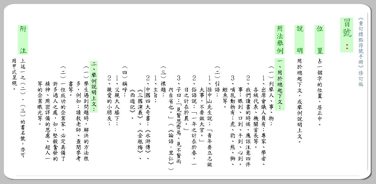 冒號 : (直式說明)