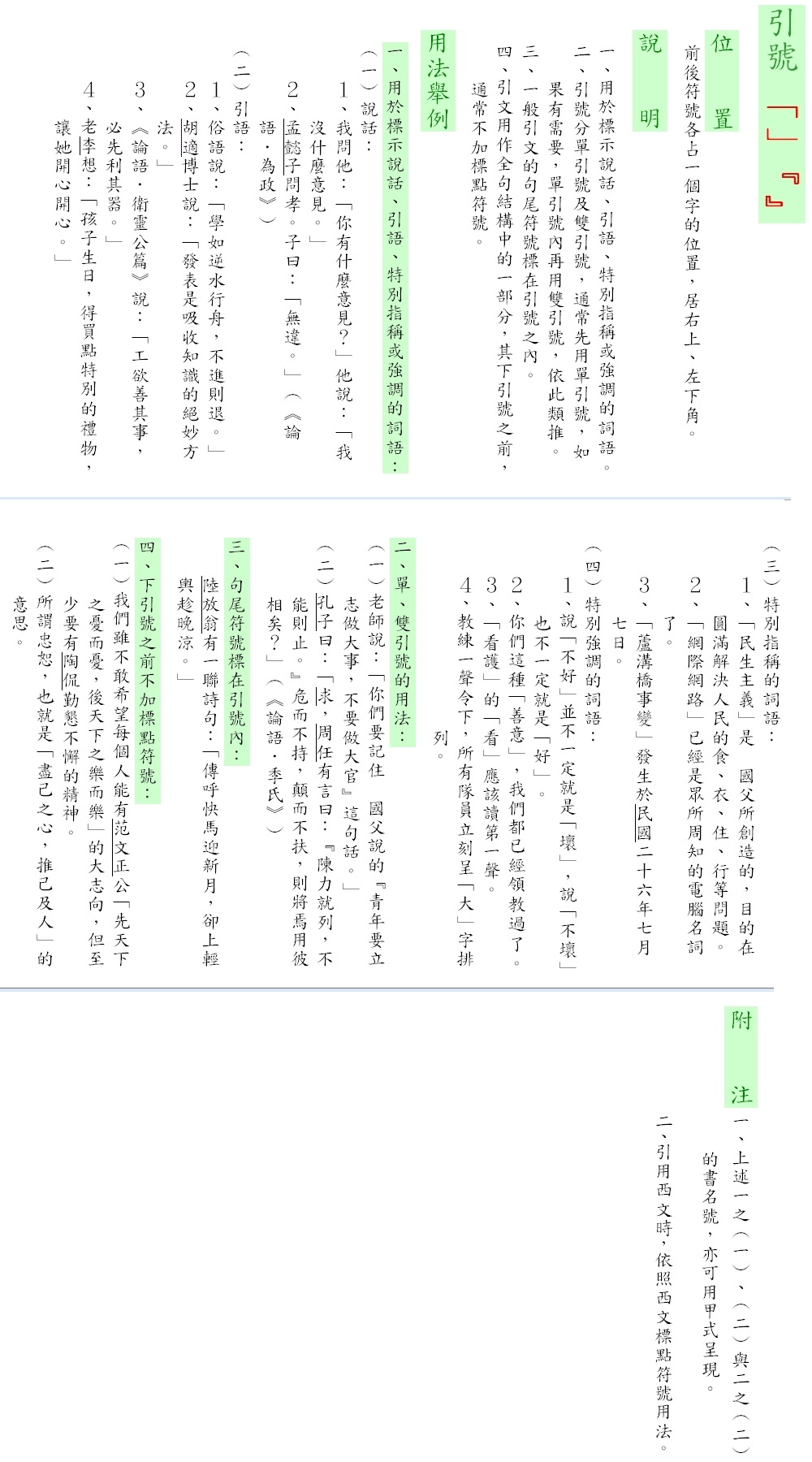附 注 一、上述一之(一)、(二)與二之(二)的書名號,亦可用甲式呈現。