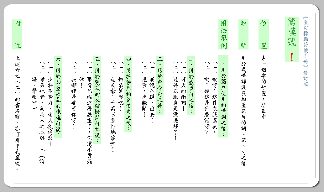 驚嘆號 ! (直式說明)