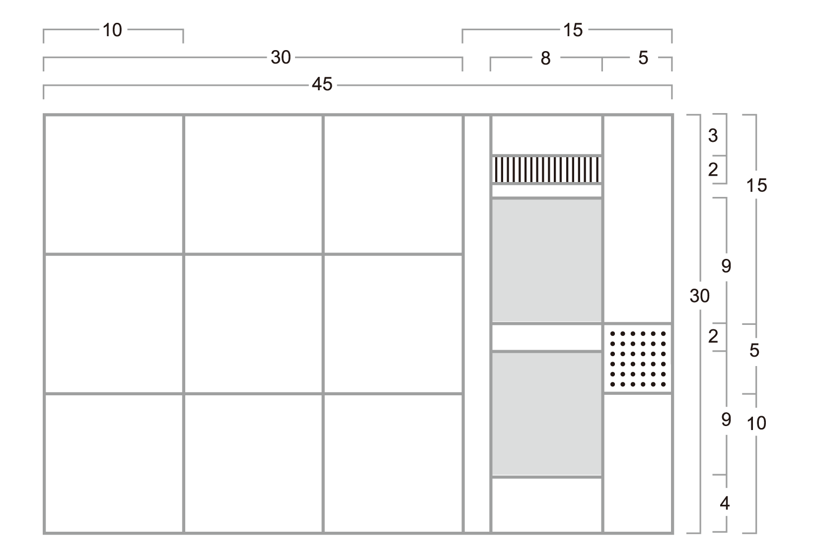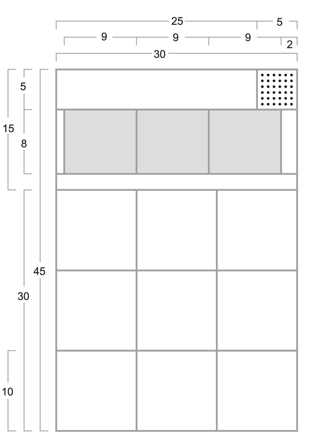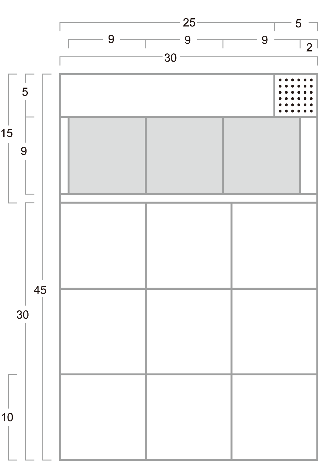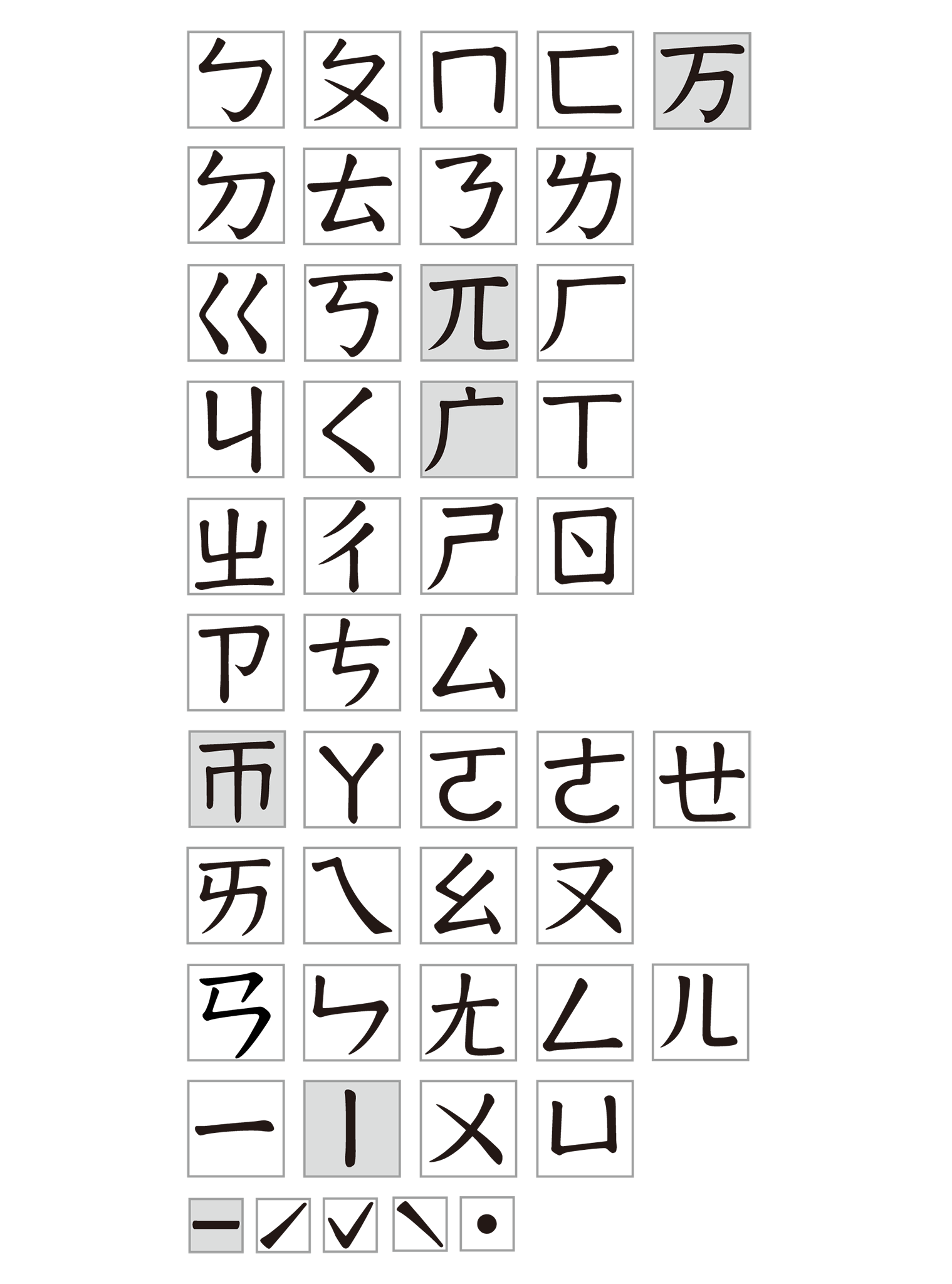 「國字注音比例參考圖」中,國字之長寬比例為30:30,注音符號的長寬比例直式為30:15,橫式為15:30,而單個注音符號之長寬比例則有9:9、9:8、8:9三種,可視實際需要選擇使用。