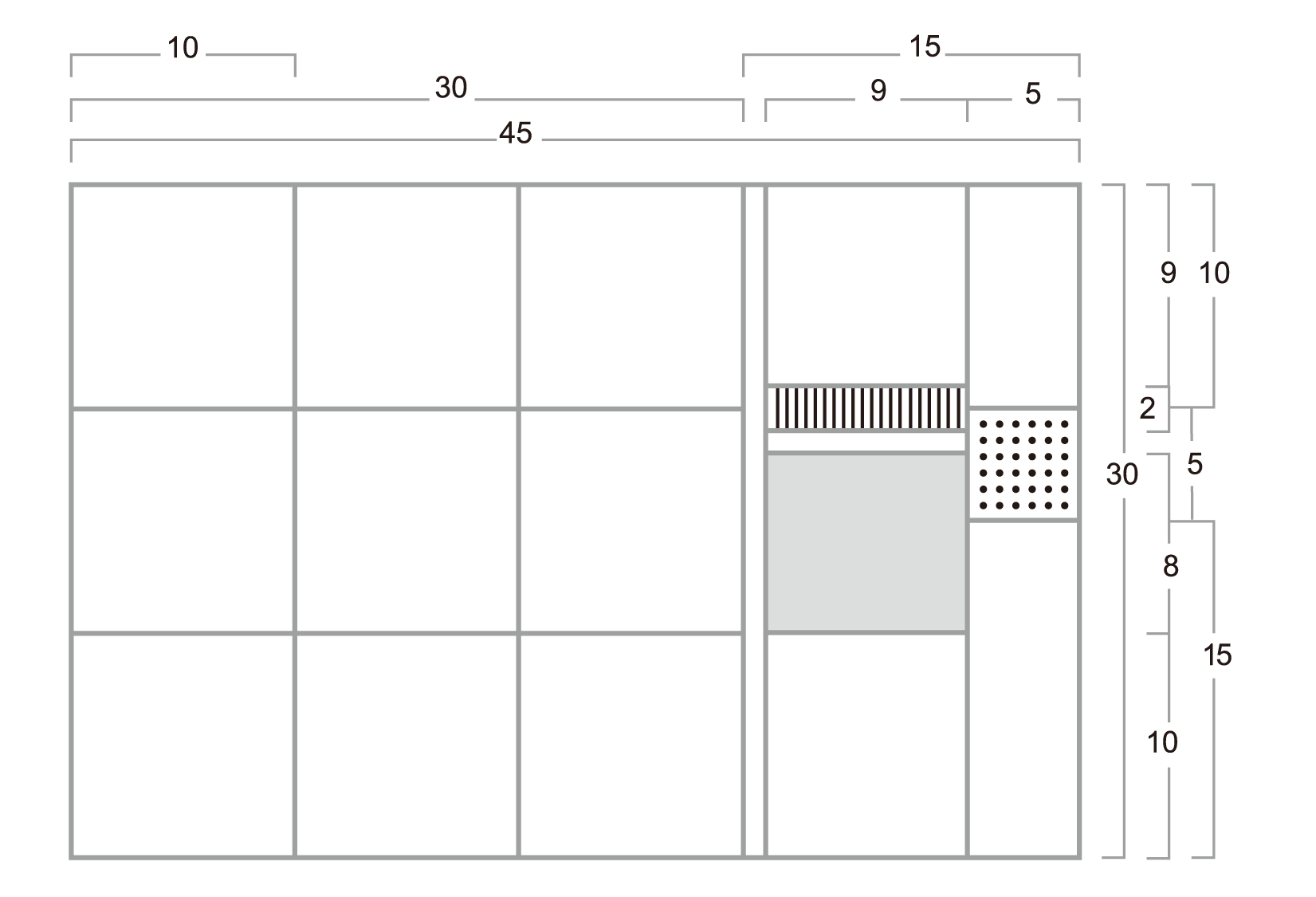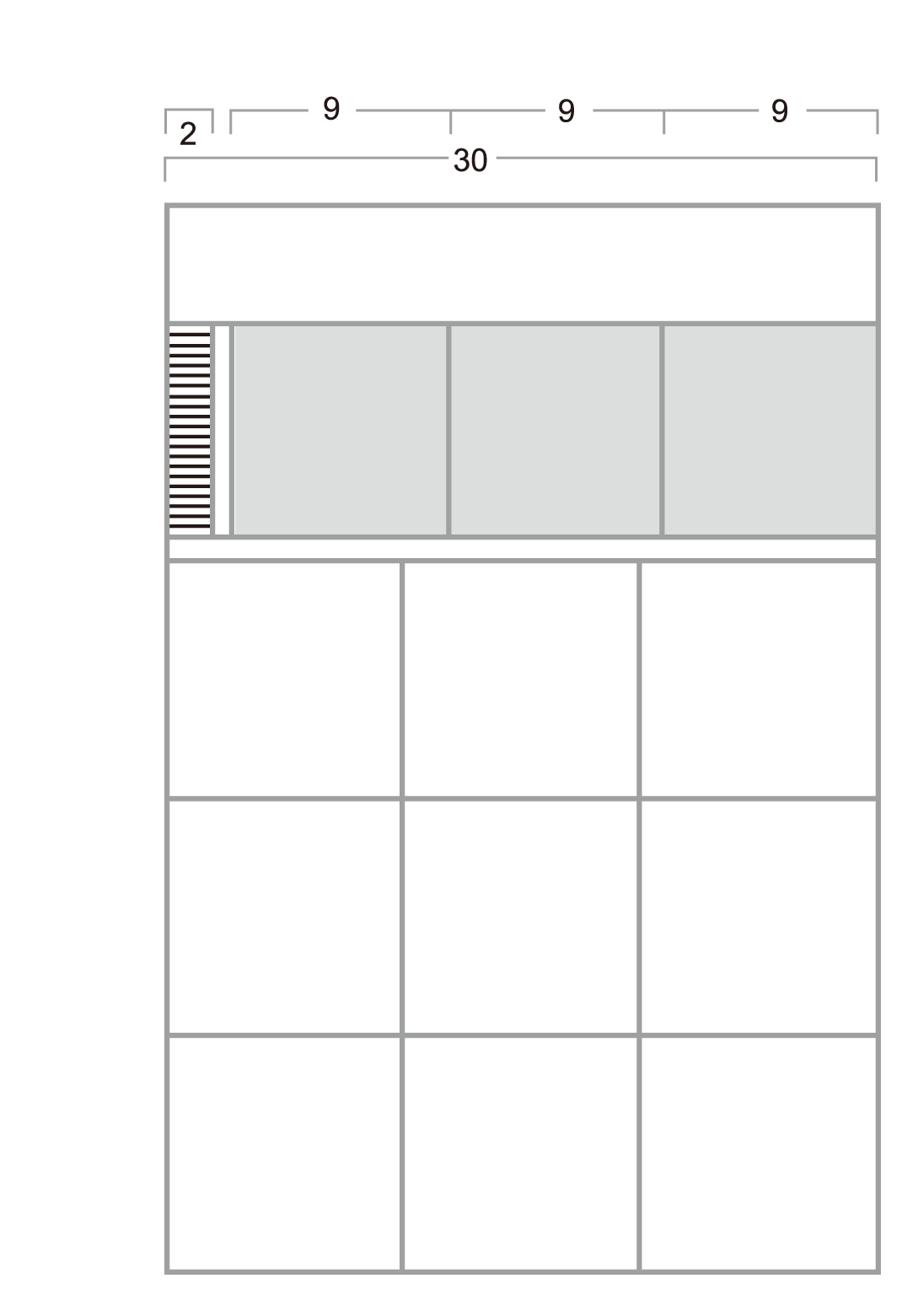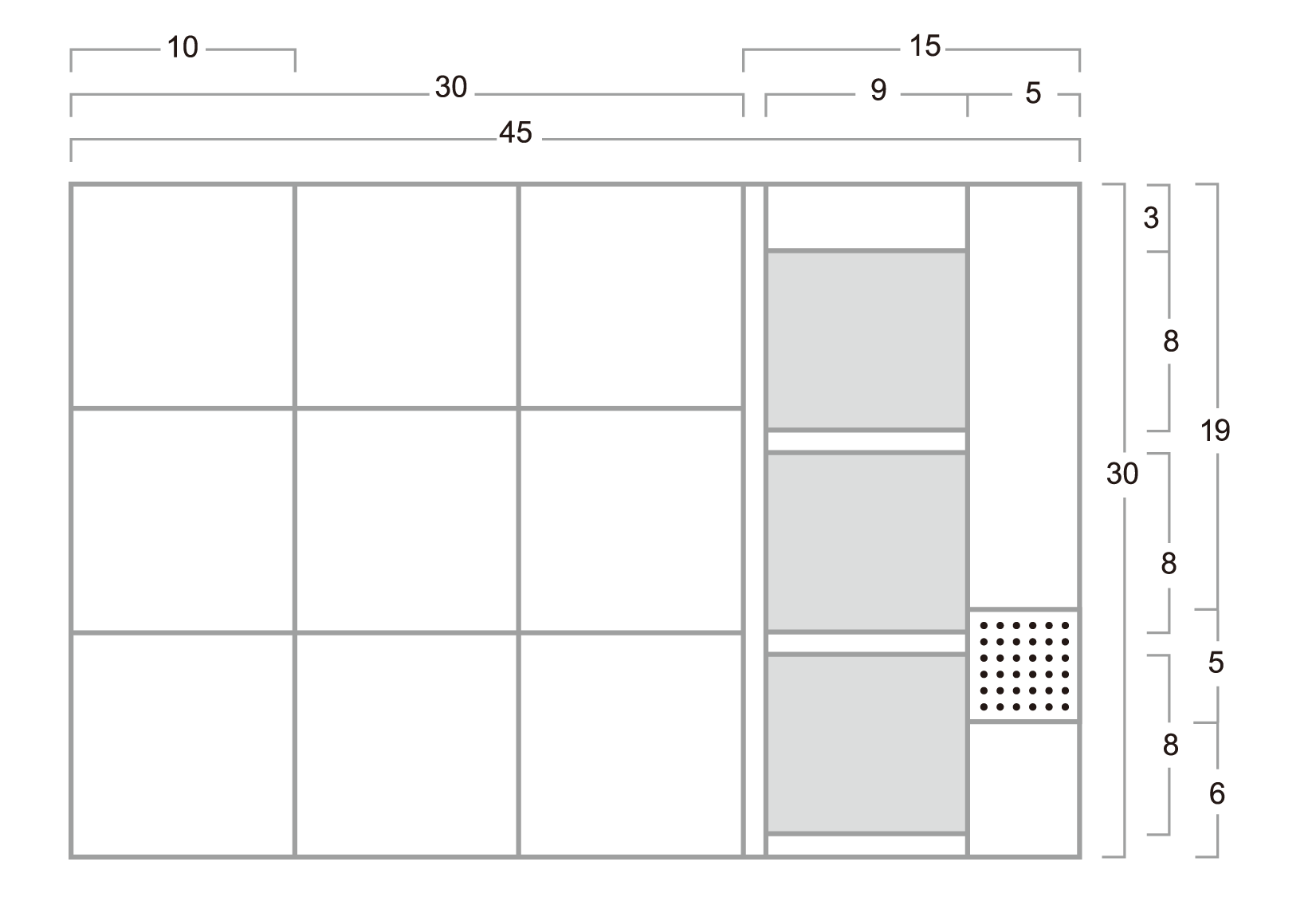 「國字注音比例參考圖」中,國字之長寬比例為30:30,注音符號的長寬比例直式為30:15,橫式為15:30,而單個注音符號之長寬比例則有9:9、9:8、8:9三種,可視實際需要選擇使用。