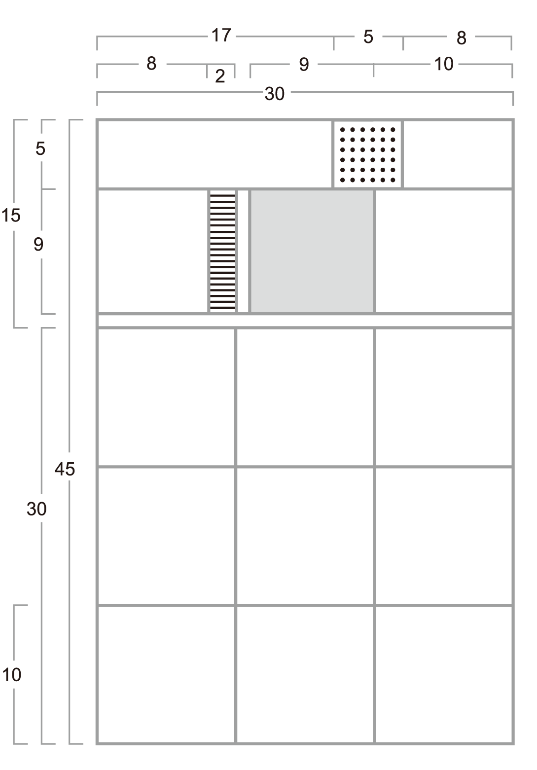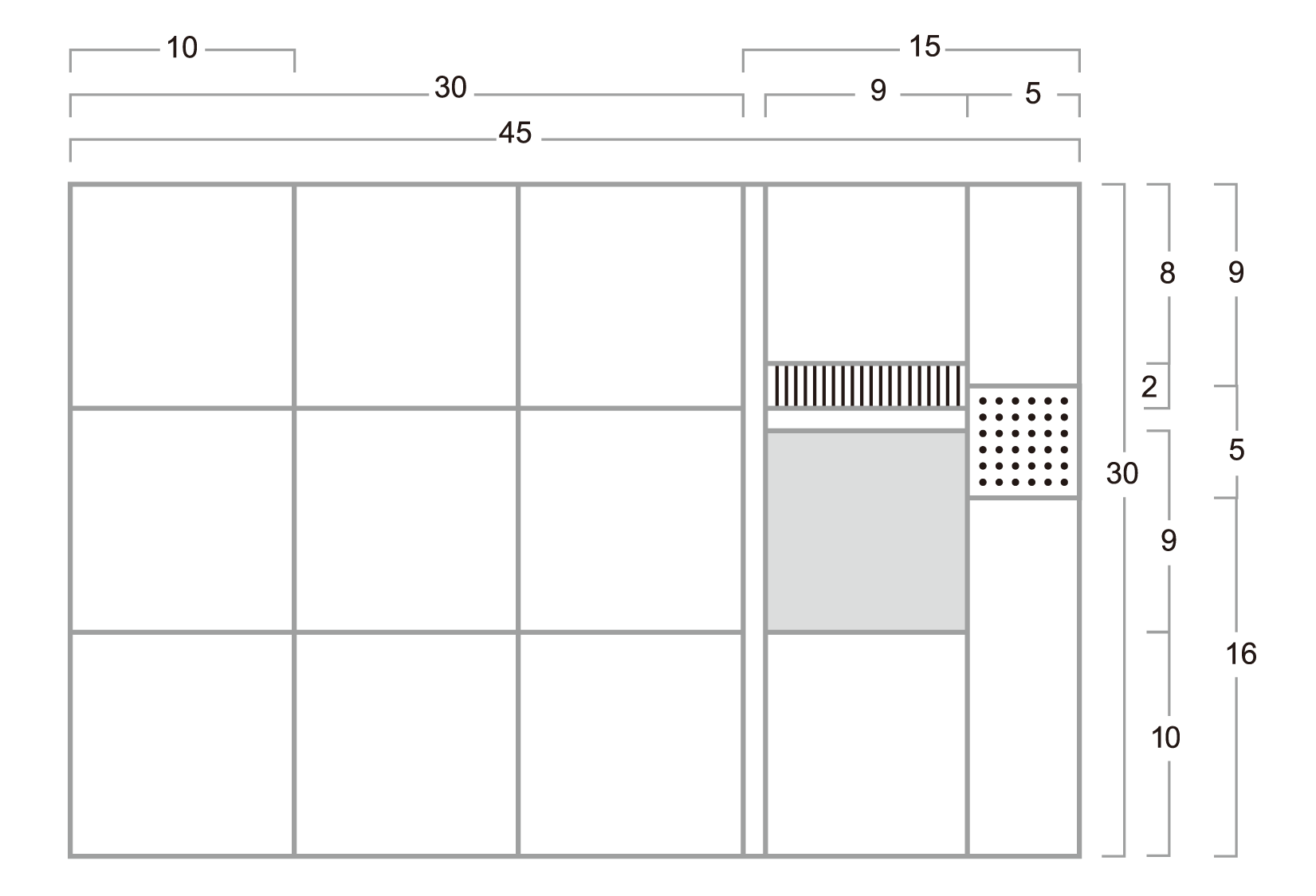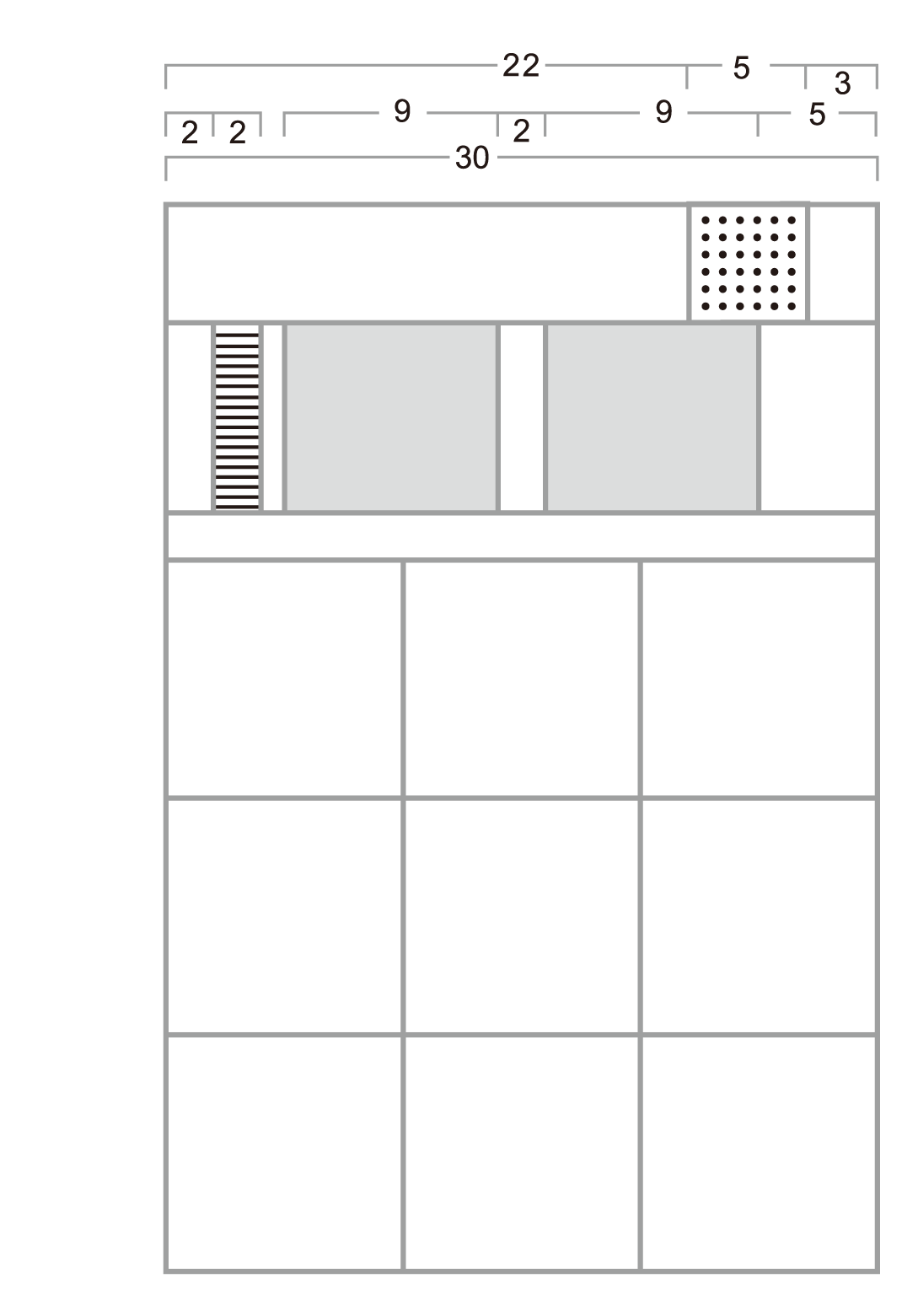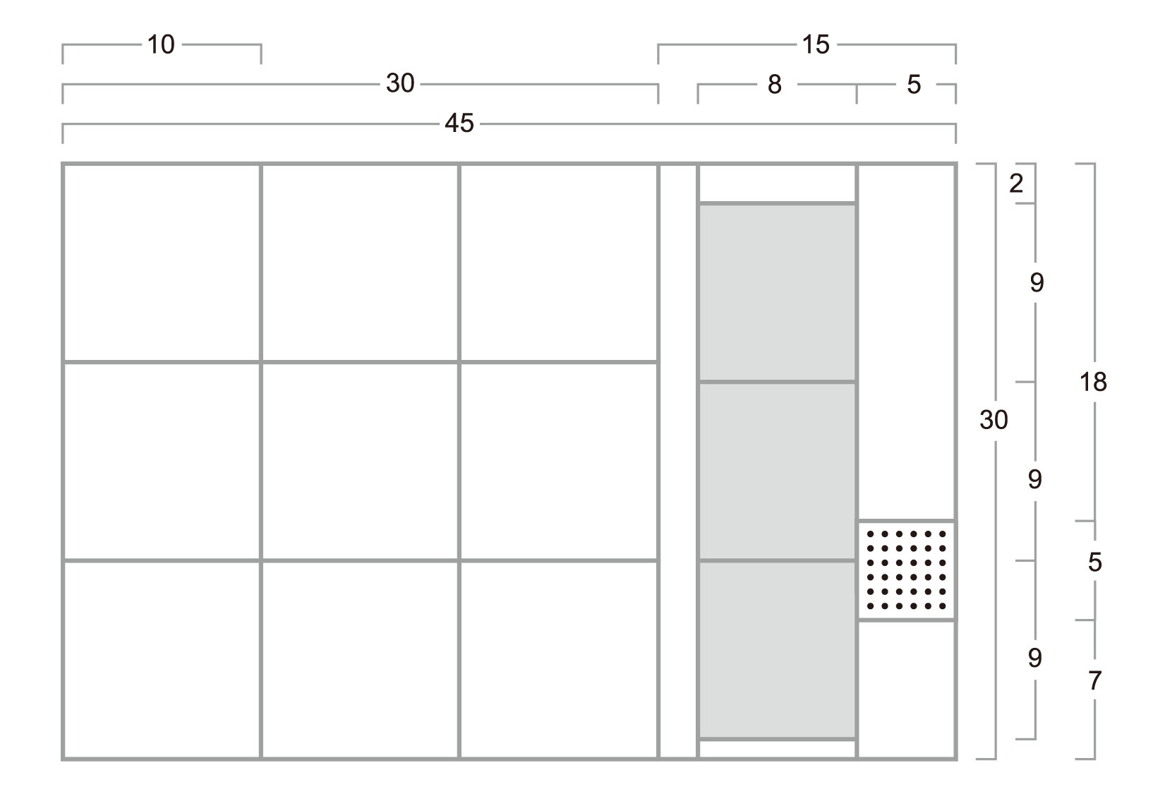 「國字注音比例參考圖」中,國字之長寬比例為30:30,注音符號的長寬比例直式為30:15,橫式為15:30,而單個注音符號之長寬比例則有9:9、9:8、8:9三種,可視實際需要選擇使用。